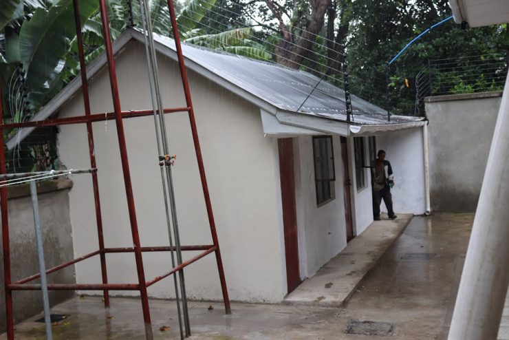 It has a big garden with an extra 2 room outside which can be used as a staff room. Parking with no shade as you can see photos on the website. The compound has a concrete wall with metal ventilation and electric fence,