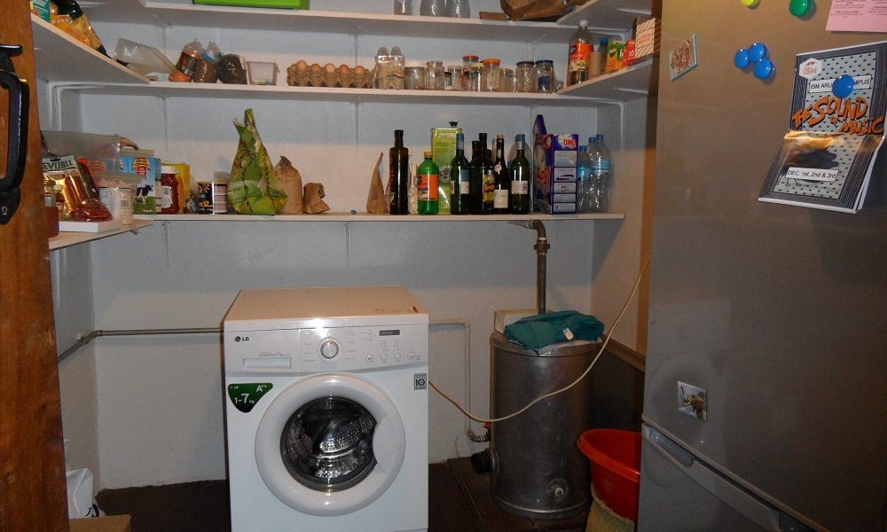 - Family sized kitchen with fridge, washing machine, and cooker.