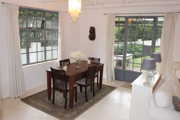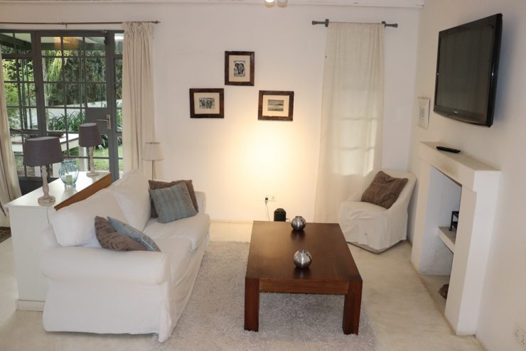 - Living Room with nice light and natural white cement floor opens onto a very nice verandah, perfect for barbecue or braai and overlooking charming low maintenance front garden.
